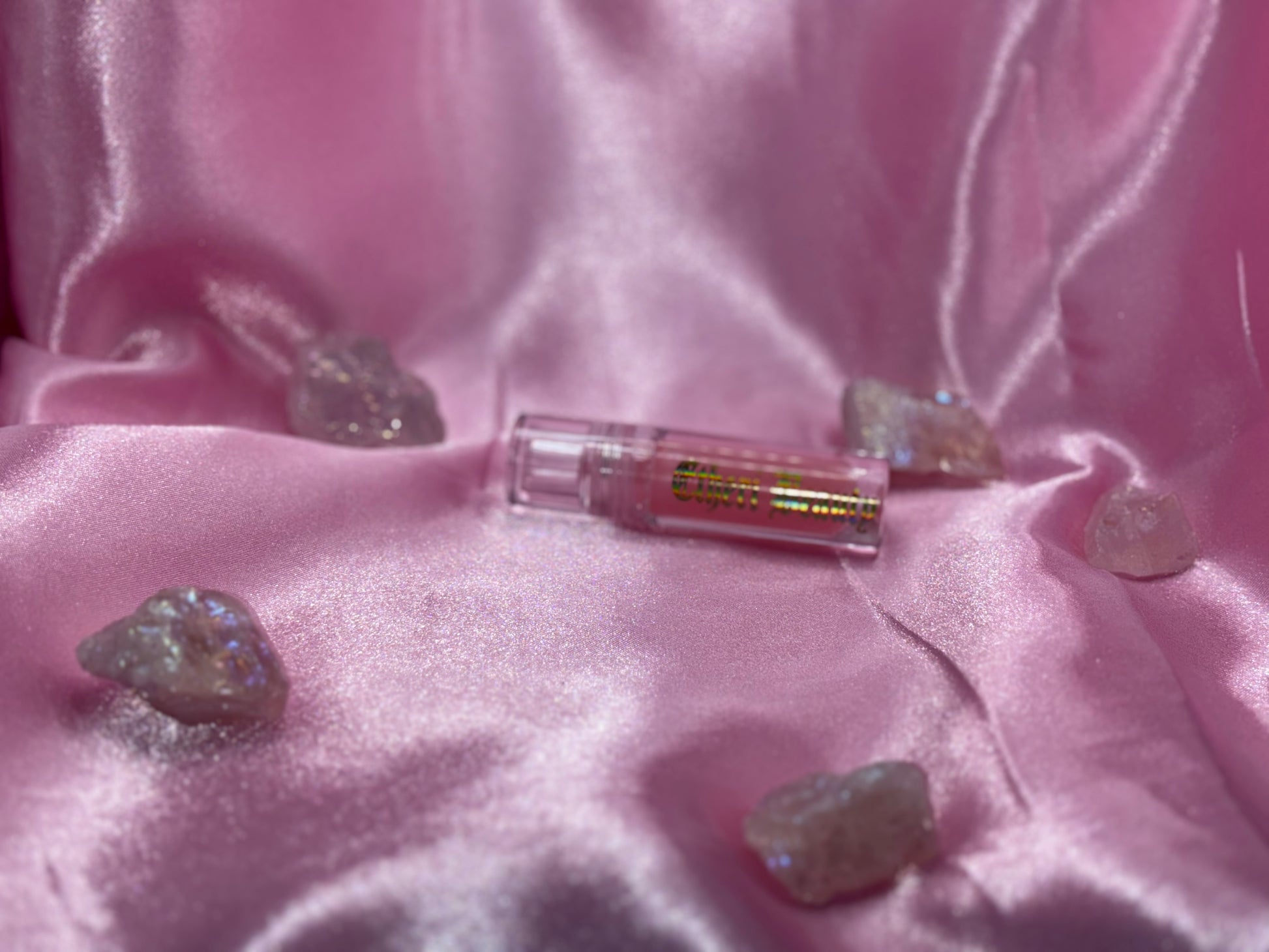 Enhance your lips with ETHERI BEAUTY's ROSE QUARTZ CRYSTAL GLOSS, infused with a delicious strawberry flavor oil and enriched with nourishing ingredients like fractionated coconut oil. This gloss embodies the soft, feminine aesthetic of the "soft girl era" and is a must-have for your daily beauty routine. Simply toss it in your bag and take it with you wherever you go!